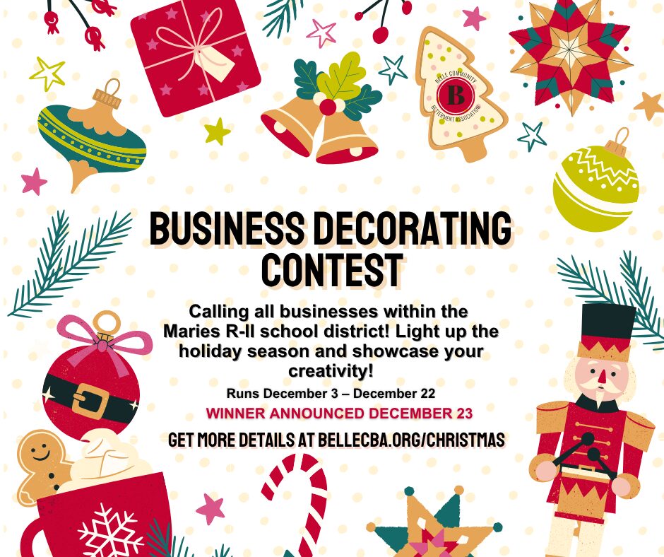 Calling all businesses within the Maries R-II school district! Light up the holiday season and showcase your creativity with our Business Decorating Contest. Participating is absolutely free, and all you need to do is submit one picture of your beautifully adorned establishment to BCBA.