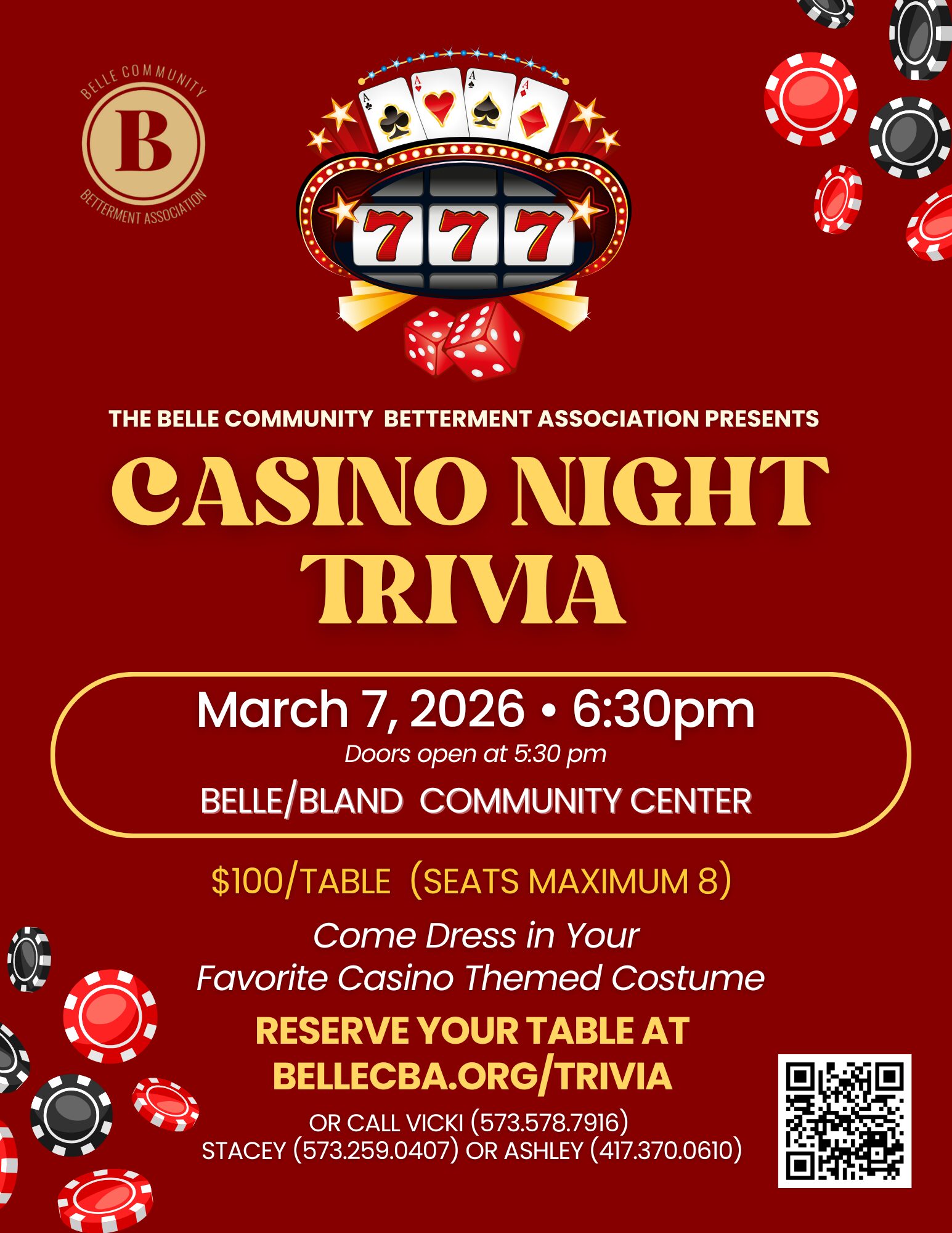 Get ready to roll the dice, test your luck, and show off your trivia skills at the Belle Community Betterment Association’s Casino Night Trivia!